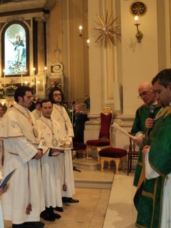 20/01/2011 - L’atmosfera delle grandi occasioni, il profumo forte dell’incenso, la chiesa illuminata a giorno e i canti solenni hanno accompagnato nella serata di domenica 16 gennaio c.a. quello che mi piace definire l’inizio del prosieguo, il succedersi cioè della nuova amministrazione della nostra Confraternita. Da domenica la nostra associazione ha una nuova guida, il Priore Cosimo Roselli, ed i suoi Assistenti Gianluca Annese e Giuseppe De Robertis. La serata di domenica ha dunque sancito la conclusione ufficiale del mandato dell’Amministrazione guidata da Angelo Spagnoletta, e le sensazioni in merito fra i numerosi confratelli sono state forti, perchè sono stati sei anni di guida forte ed intensa, ma soprattutto di grande rinnovamento. Il sottoscritto era fra i confratelli presenti, ma lo era anche sei anni fa, al precedente insediamento, e le differenze fra i due momenti rappresentano perfettamente la crescita assoluta che in questi sei anni ha avuto l’associazione. Perfette sono sembrate le parole rivolte all’amministrazione uscente da don Sergio durante l’omelia, con le quali il nostro Padre Spirituale ha voluto precisare il maggior valore che ha ancora per l’associazione chi è stato sugli scudi ed ora lascia il proprio posto, ma ha dalla sua l’esperienza per tendere la mano a chi subentra, nel gesto di mostrare la strada segnata o nel gesto di sostenerne l’operato.
